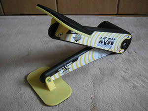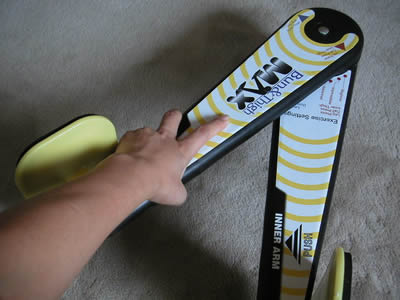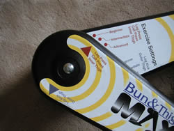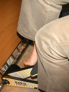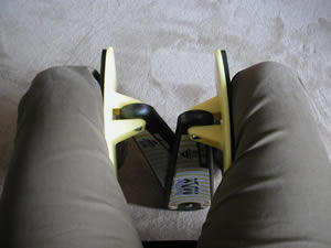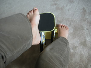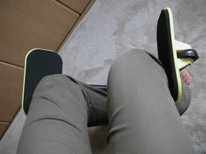 さっそく、椅子に座って運動。片足ずつやります。バン&サイMAXの本体はプラスチック製で、そんなにがっちりしたものではないのですが、なかなか力が必要で、10回ほど踏み込んだら、太ももが痛くなってきました。うーん、なんかききそうな感じ♪ いいぞ!