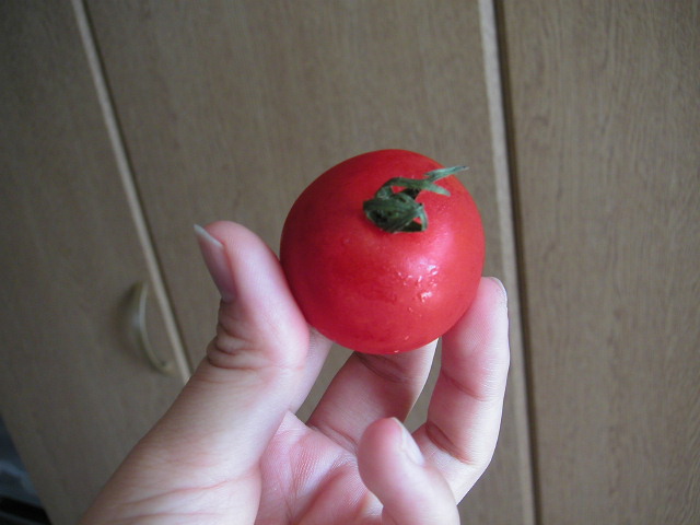 これがトマト。 おいしっくすのサイトでも、自慢されていた食材だ。我慢できずに、ダンボール開封後の5分後には、かじってしまった。 うまい! 味が濃い! やわらかい・・・というのではなく、「しっかりしている」という感じ。ミニトマトよりも、ずっと歯ごたえもある。 そして、なんと2時間後には、全部食べてしまっていた。 今度、これだけ注文してもいいなあ。。。