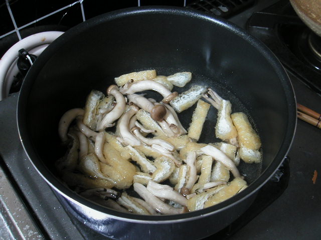 一緒に入れているのは、油抜きして切った油揚げ。味付けは、薄口しょうゆとみりん。