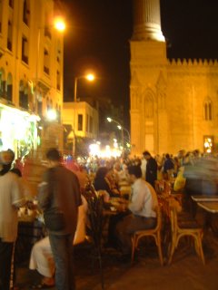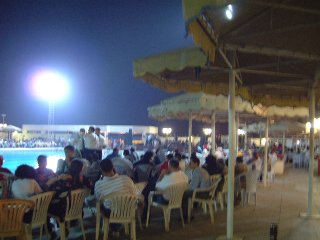 アハマド(大家さん夫婦の次男)とムハンマド(同長女のだんな)の誕生祝で、ナセルシティのクラブに行った。プールサイドは夜、こういう人が集まる場所になることが多い。(昔結婚式をプールサイドでやっているのを見たこともある)もちろんアルコールはないが、歌や子供達のダンスなどで盛り上がった。