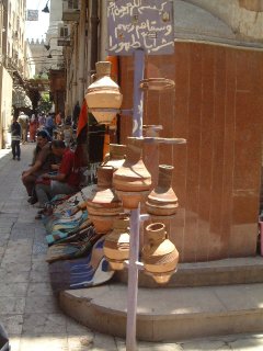街角の水壺。通行人が勝手に飲むことができる。素焼きの壺のため、表面から水が蒸発していき、その気化熱で冷たさを保っているそうな。いつか飲んでみようと思いつつ、結局手をだせなかったもののひとつ。
