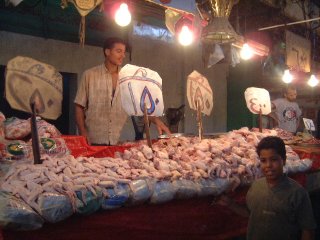 アタバの食肉市場。鶏肉中心に、牛・羊などが売られているが、とにかく「生々しい」の一言。昔は鶏をまるごと購入し(死んでいて羽はむしってあったが)、切れない包丁で一生懸命解体し、スープを作ったりしていた。