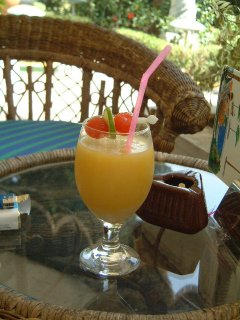 今回は、「プチリッチ」の旅なので、ちょっと疲れると☆付ホテルのカフェテリアなどに転がり込むことにしている。ここはお気に入りのナイルヒルトンホテルのプール近くのカフェテリア。ノンアルコールカクテルは約20£(600円)。