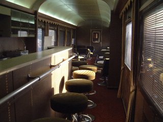一等車に隣接する、カフェテリア車両。カウンタのほか、ソファスペースがあり、グループできている人たちが、ビール(サッカラビール)など飲みながら歓談して過ごす。