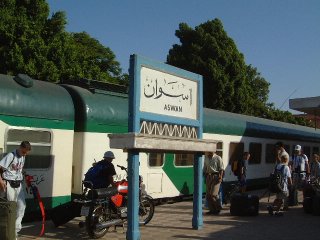 アスワン駅。とっても明るい開放的なプラットフォーム。降りた瞬間に熱風が吹いてきて、エジプト南端についたことを実感する。