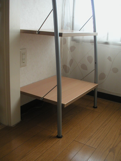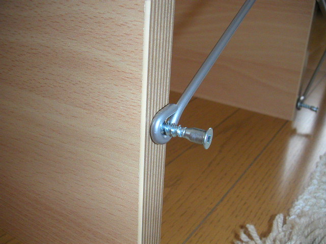 | 下から三番目の棚のすぐ下に、横軸を固定して完成!写真を撮りながらでも30分くらいの作業。 ↓ |