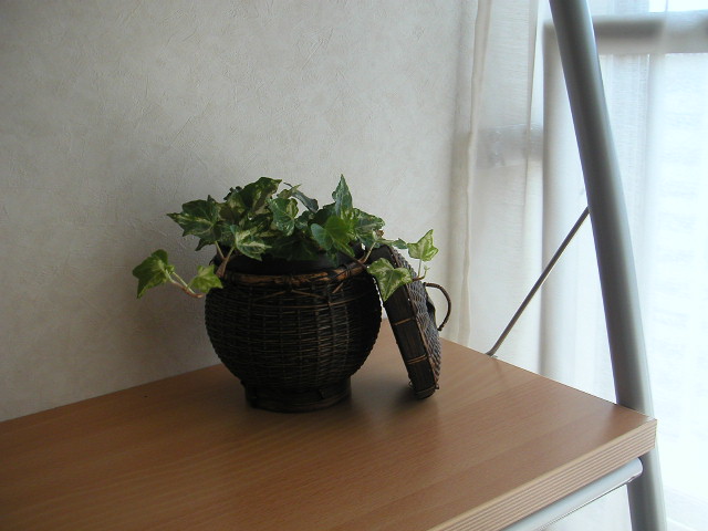 さっそく、キッチンのカウンターにあったアイビーを置いてみました。 いい感じ♪ |