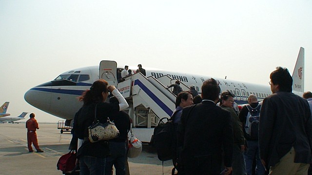 そこのエアチャイナのチェックインカウンターに並び、荷物も預ける。