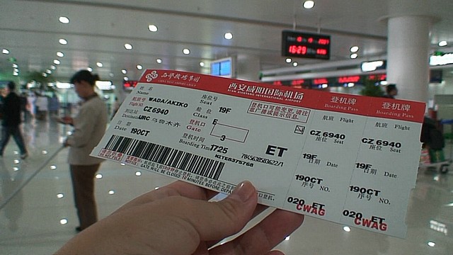 西安までのチケットは、国内の旅行代理店で購入していたので問題ないけど(といっても予約したのは4日前)、2日前にネットで購入した「西安─ウルムチ」は、「BizExpress(ビズエクスプレス)」という中国の会社が運営する日本語サイトを使ったこと、番号だけメールで届く「e-Ticket」だったこともあり、メールをプリントアウトしたものを握りしめ、