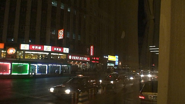 激しく揺れるバスの中からウルムチ市内をビデオ撮影。