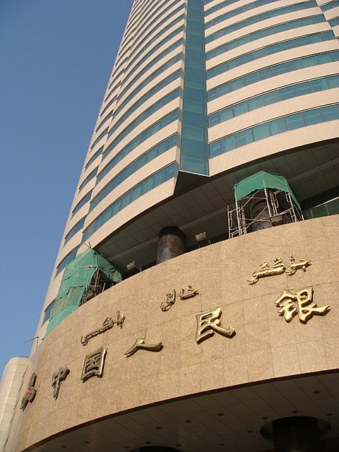 宿泊したホテルのすぐ隣には、巨大な中国人民銀行のビル。