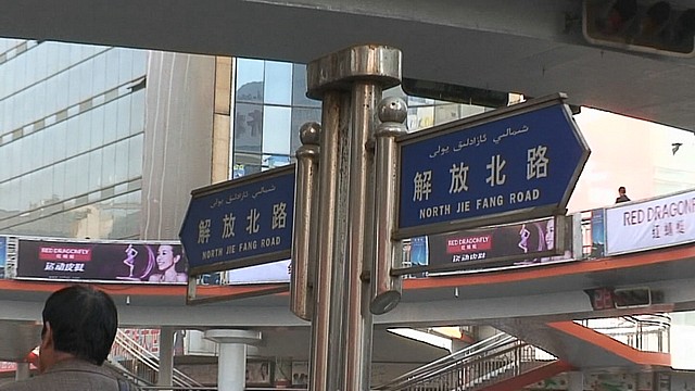 夜、シャトルバスの窓からも見ていたが、ホテルやお店など、漢字とアラビア文字(ウイグル語)が併記されている。このホテルではさらに英語も。なんだかとっても新鮮だ。
