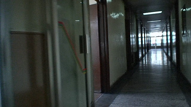 外から見たらかなり大きな建物だったが、奥行きはなかったようで、まっすぐな廊下の両脇に部屋が並んでいる。なんか病院の入院棟みたいだなあ。