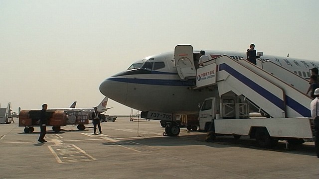 飛行機はエアチャイナの上海行き。