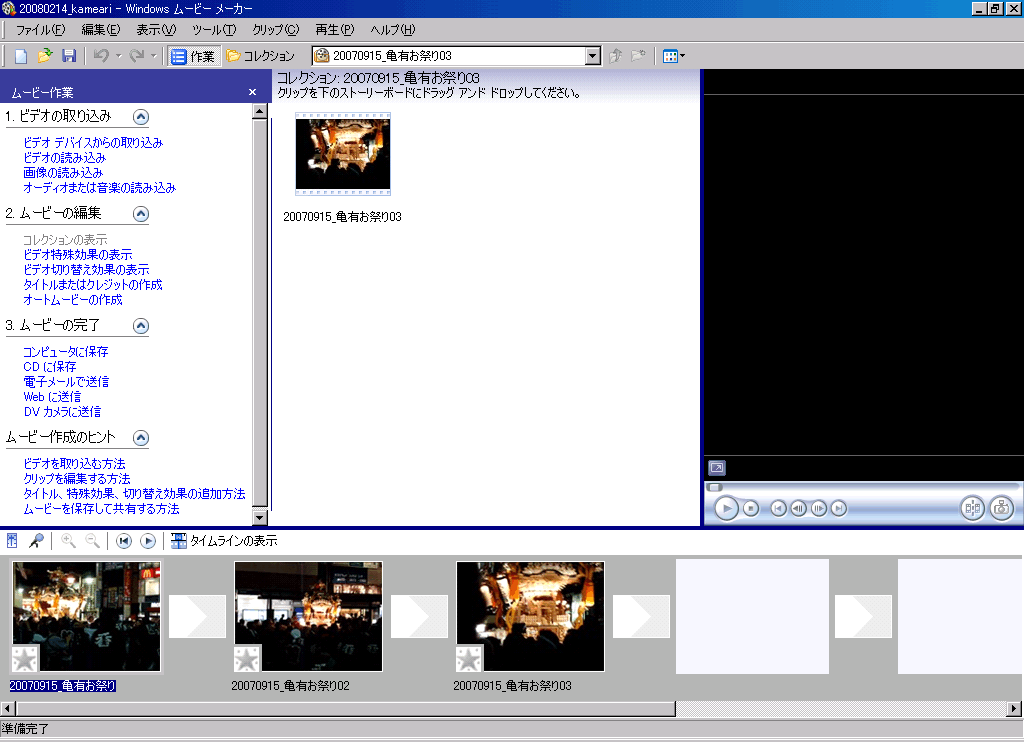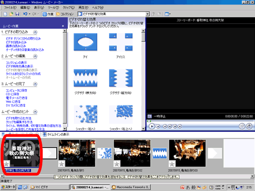 そうではなく、編集作業している動画の中の個々の動画や写真(クリップ)の前後/最中に入れたい場合には「ストーリーボードで選択したクリップ・・・」を選びます。