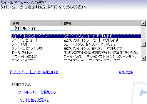タイトルのスタイル(アニメーション)は、「クレジット用」としていろいろ用意されています。エンドロール的に下から上にテキストがスクロールするものもあります。こちらも暇な時にひととおり試しておくといいと思います。