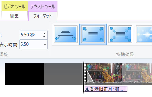「テキストツール」「フォーマット」の右側では、タイトルの特殊効果を設定できます。