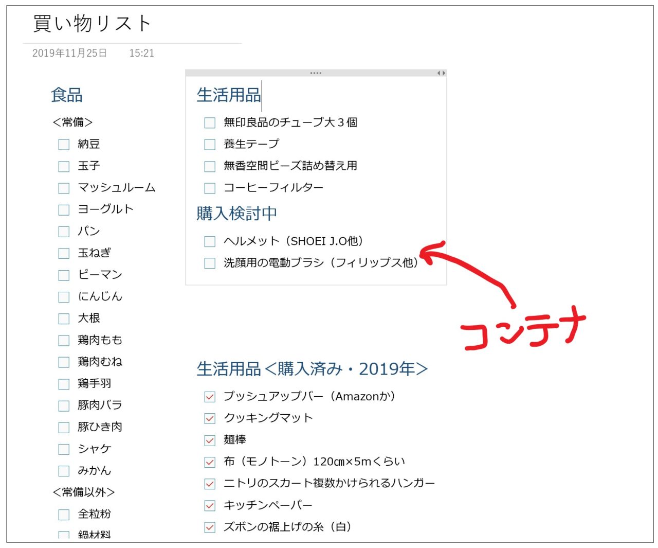 同時に、それら混在させたコンテンツを、自由自在に配置できる点もOneNoteならではでしょう。それを実現してくれるのが「コンテナ」という枠です。