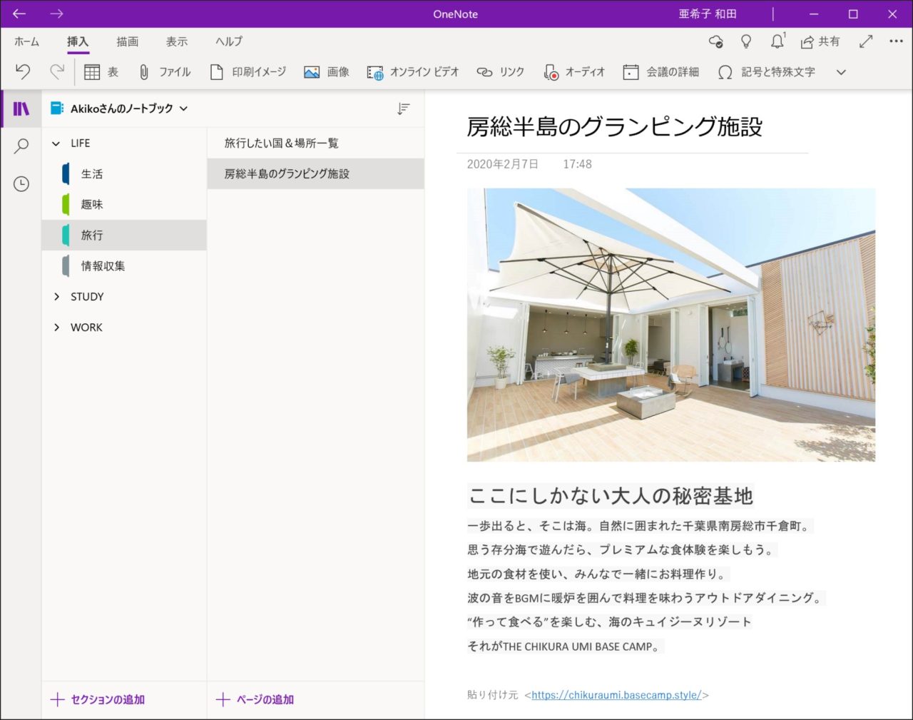 そんなインターネット情報をまとめておく場所としても、OneNoteは有効です。