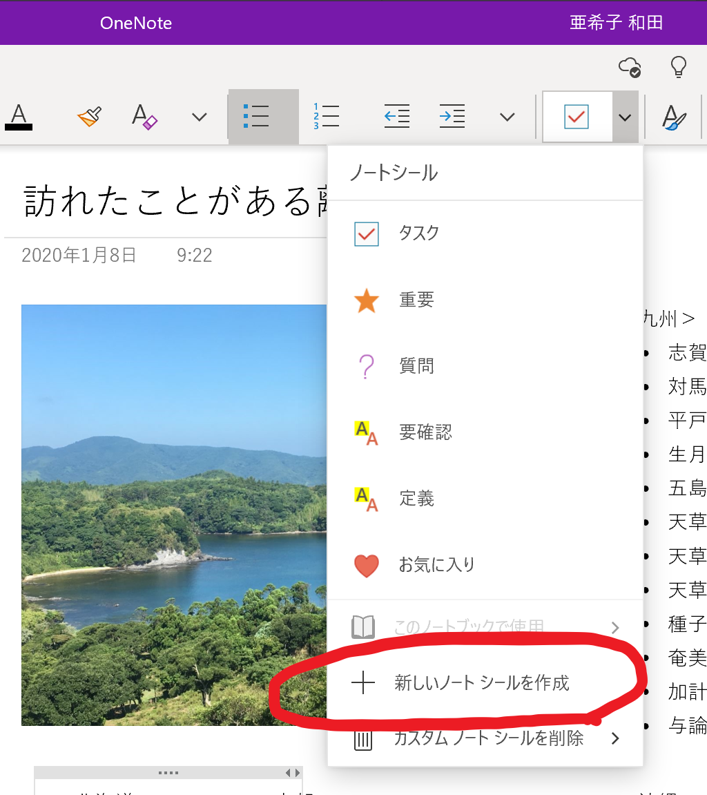 ノートシールのメニューの下のほうに「新しいノートシールを作成」というメニューがありますので、それをクリックしてみてください。すると・・・
