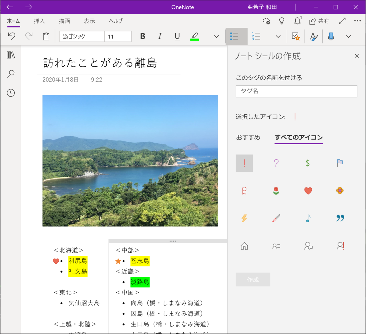 ハートや星以外にも様々なアイコンが用意されていて、好きなアイコンに好きなタグをつけて使うことができます。