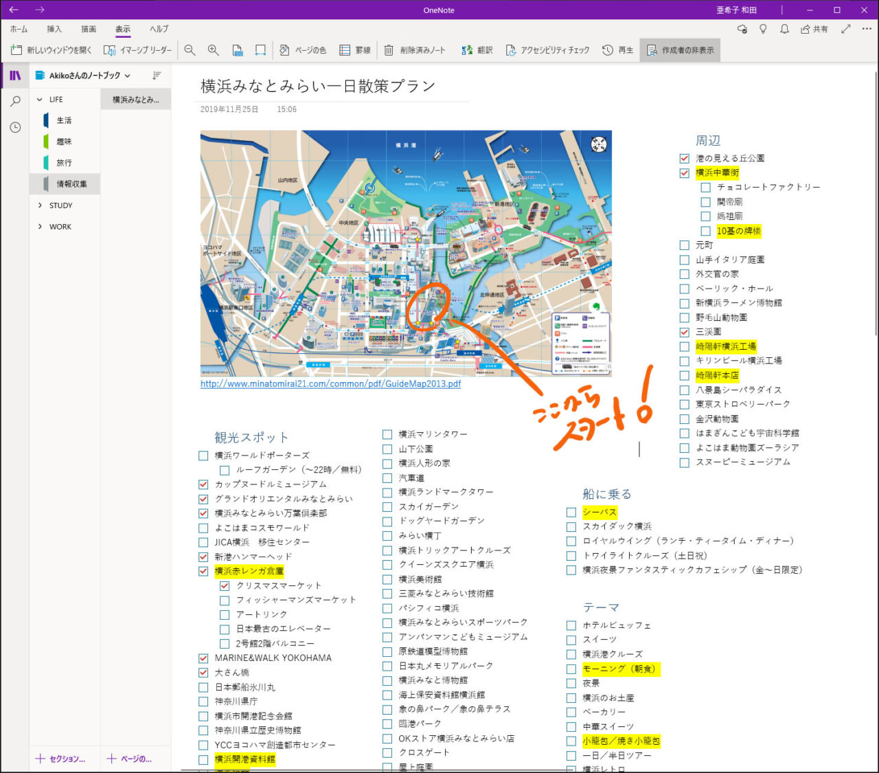 続いて今回の「散策メモ」のメイン、横浜で行きたい場所、やりたいことのリストを作成します。