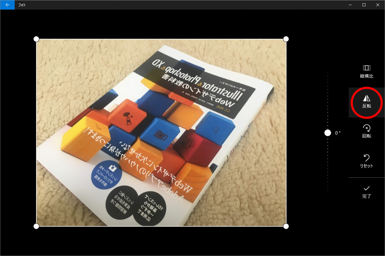 反転・回転が終わったら「完了」をクリックしましょう。ひとつ前の編集画面に戻ります。