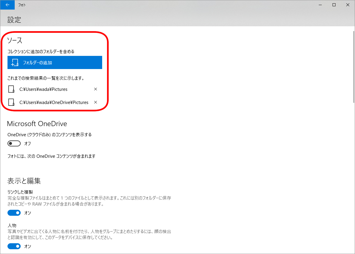 ここでは、フォトで管理するフォルダの追加と削除の設定方法を紹介します。