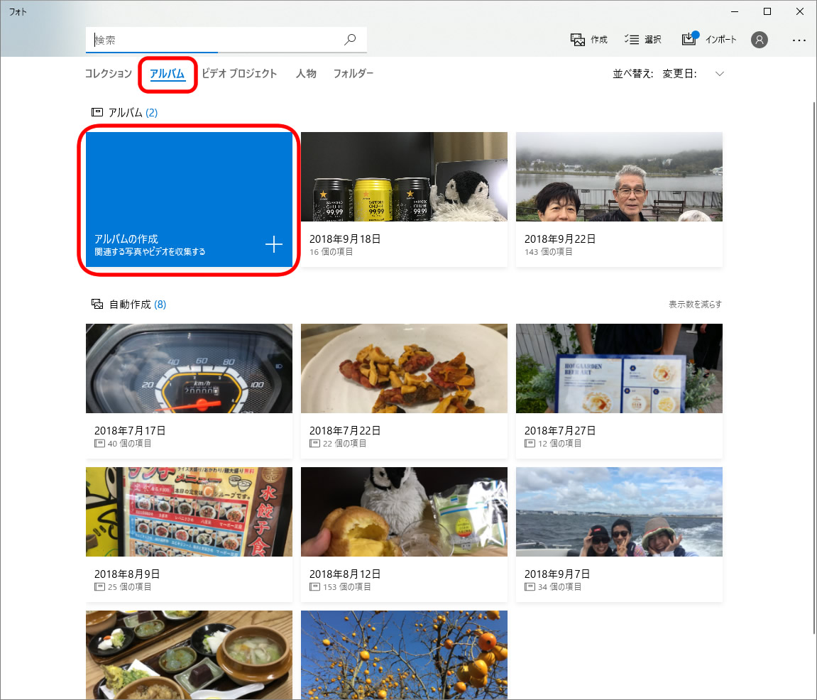 アルバムは、例えば「北海道旅行2018年10月」など旅行やイベントごとに作成してもいいですし、カフェでケーキなどの写真をよく撮っているのであれば「カフェスイーツ」といったアルバムを作ってもいいでしょう。ペットの写真アルバムなどもありです。