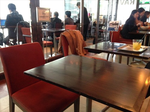 店内は大きなガラスで喫煙スペースと禁煙スペースに仕切られており、喫煙スペースのテーブル数も多い。どちらも細長い空間にテーブルがずらり並んでいる(公式サイトの写真参照のこと)。喫煙スペースでは2人テーブルをくっつけ、6人で打ち合わせしているグループも。テーブル間のスペースはあまりなく、周りの声が少々気になる。ガラス仕切りの扉部分から煙が流れてくるためタバコ苦手な人は入ってすぐの席がよさそげ。この店が満席の場合、通り隔てた反対側にサンマルクカフェとカフェドクリエがある。